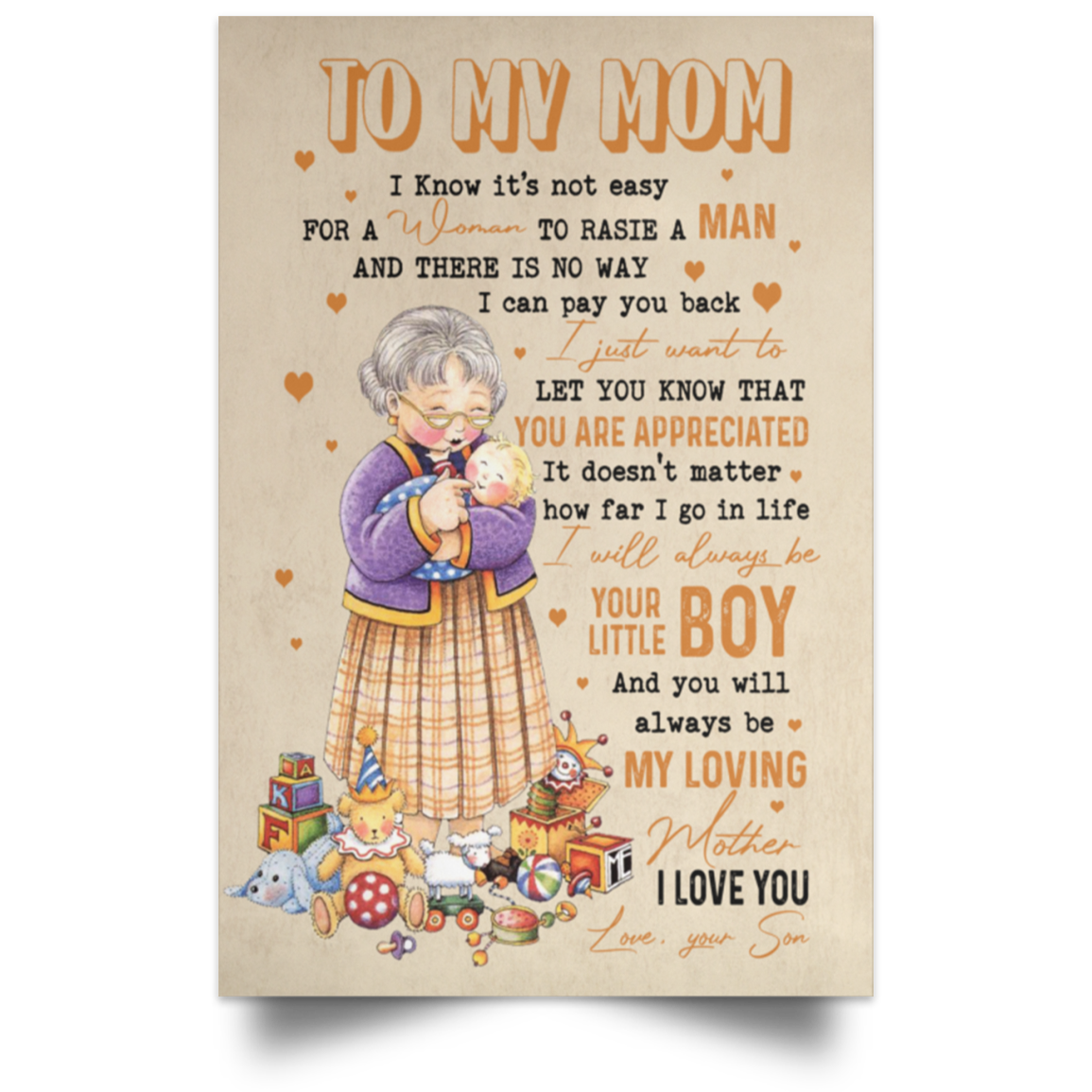 to My Mom I Know It’s Not Easy to Raise a Man from Son Art Print Size 12x18 16x24 24x36