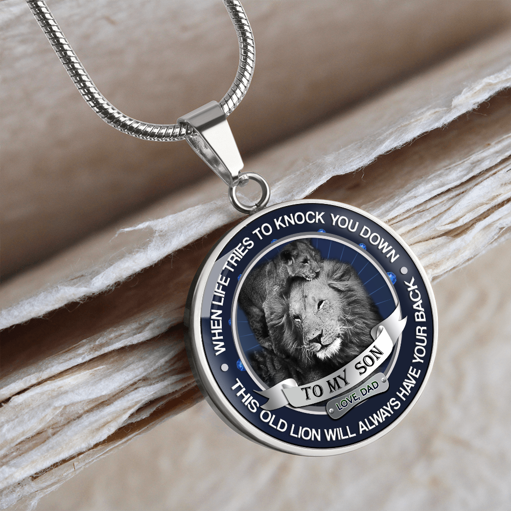 to My Son Necklace Love Dad - Father and Son Pendant - Inspirational Birthday Gifts for Tween Boy - This Old Lion Will Always Have Your Back