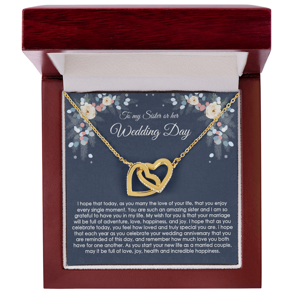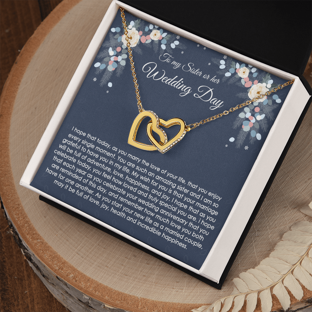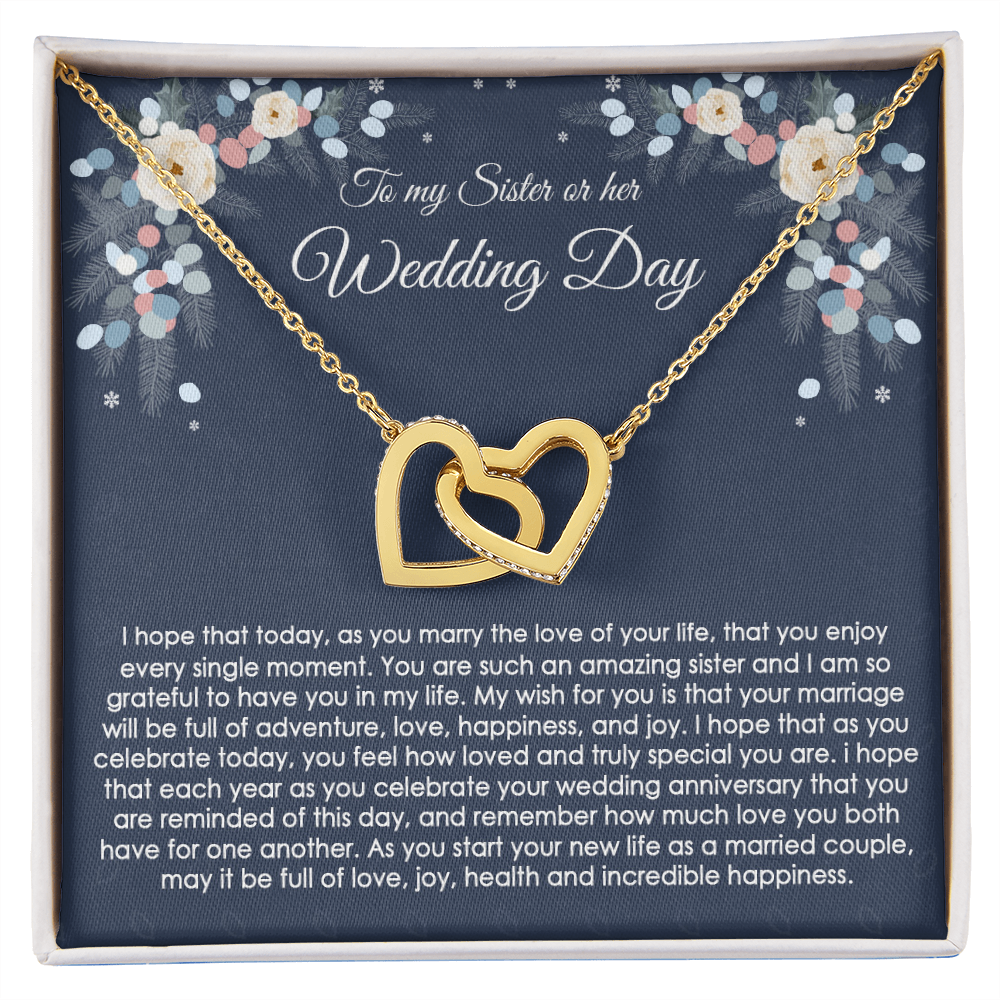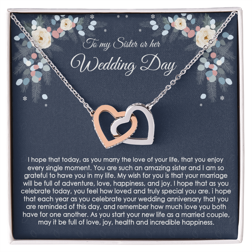 to My Sister on Her Wedding Day Gift, Wedding Gift for Sister, Jewelry Gift for Bride, Wedding Necklace for Sister, Bride Gift, Interlocking Hearts Necklace with Message Card
