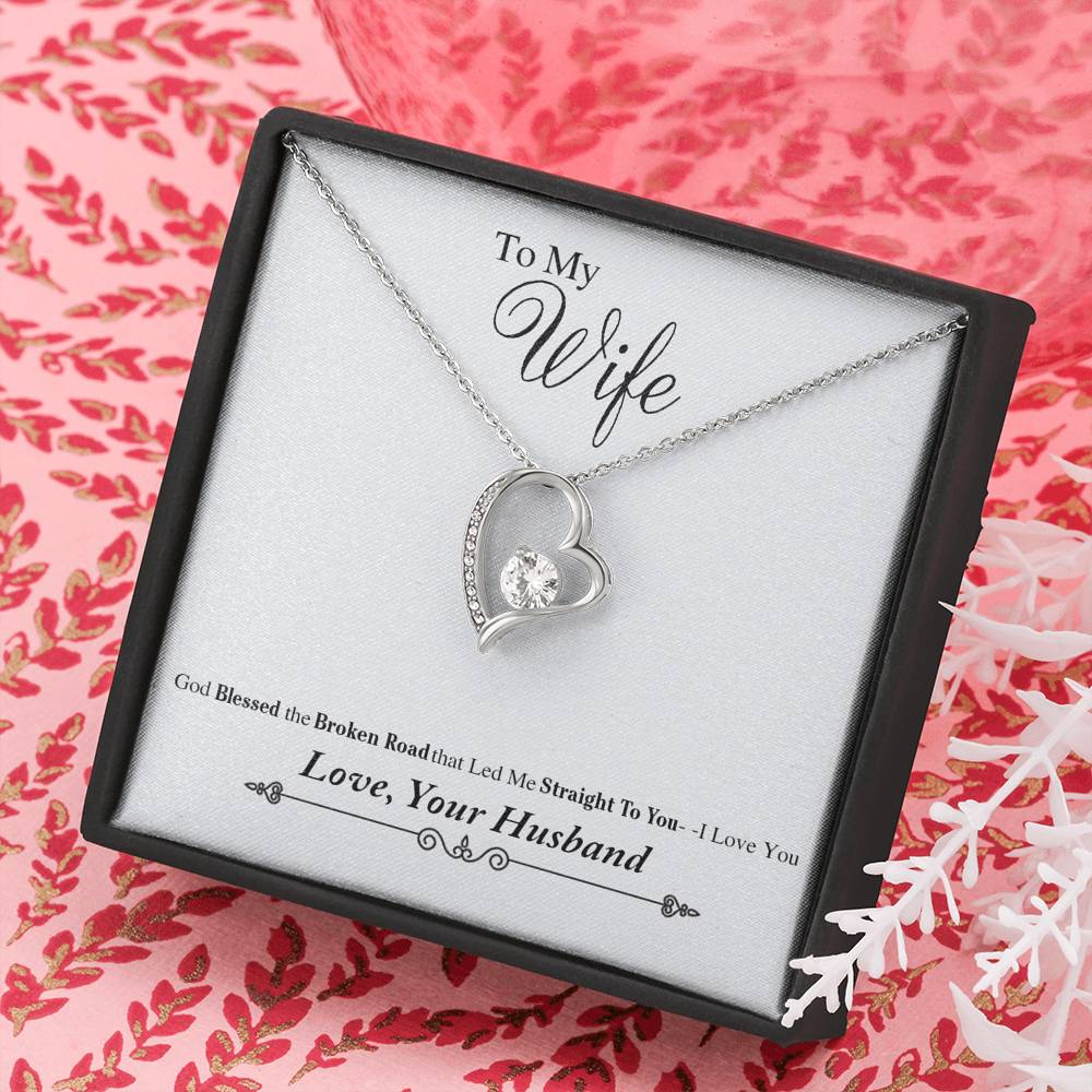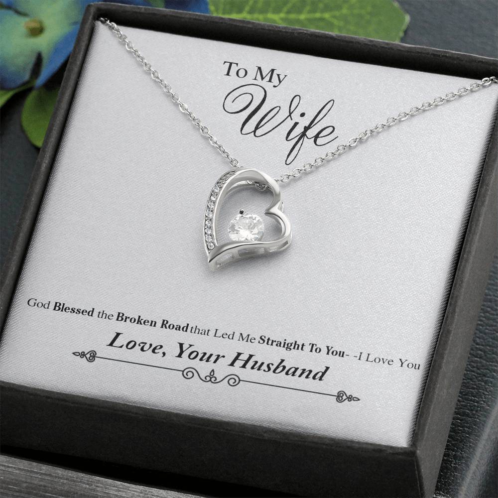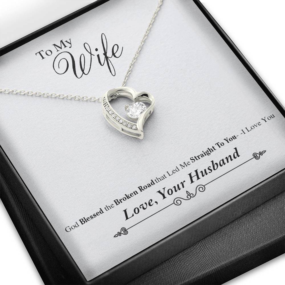 to My Wife Necklace Heart Pendant from Husband God Blessed The Broken Road for Her - Luxury Necklace Silver - Includes Gift Box!